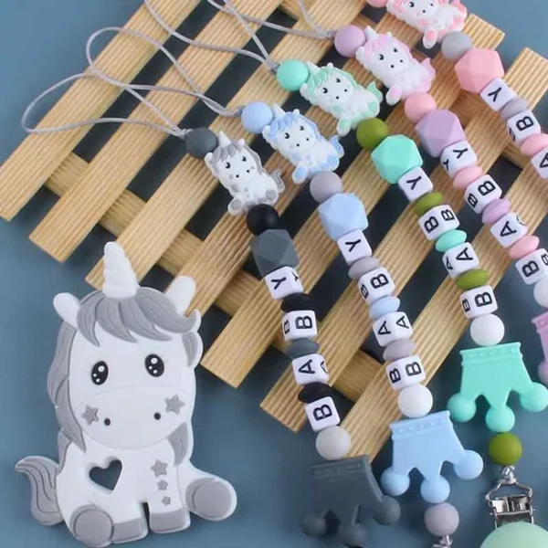 Custom Personalized Name Pacifier Chain for Baby Teether Newborn Toddler Silicone Clips Holder Baby Teething Toys Accessories
