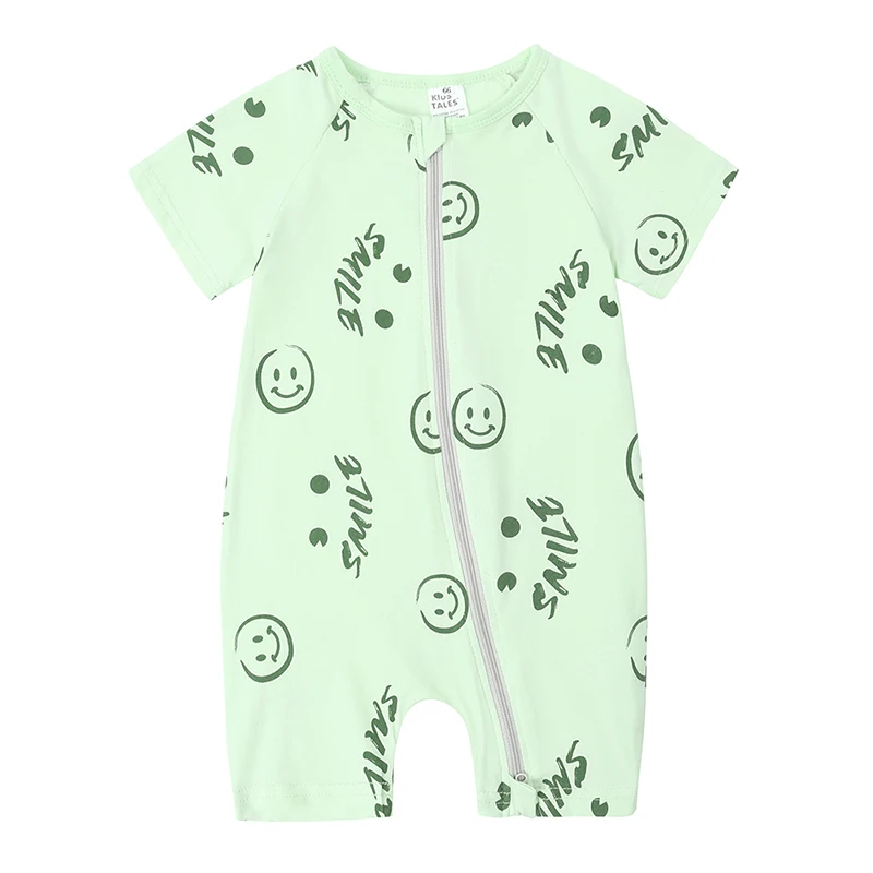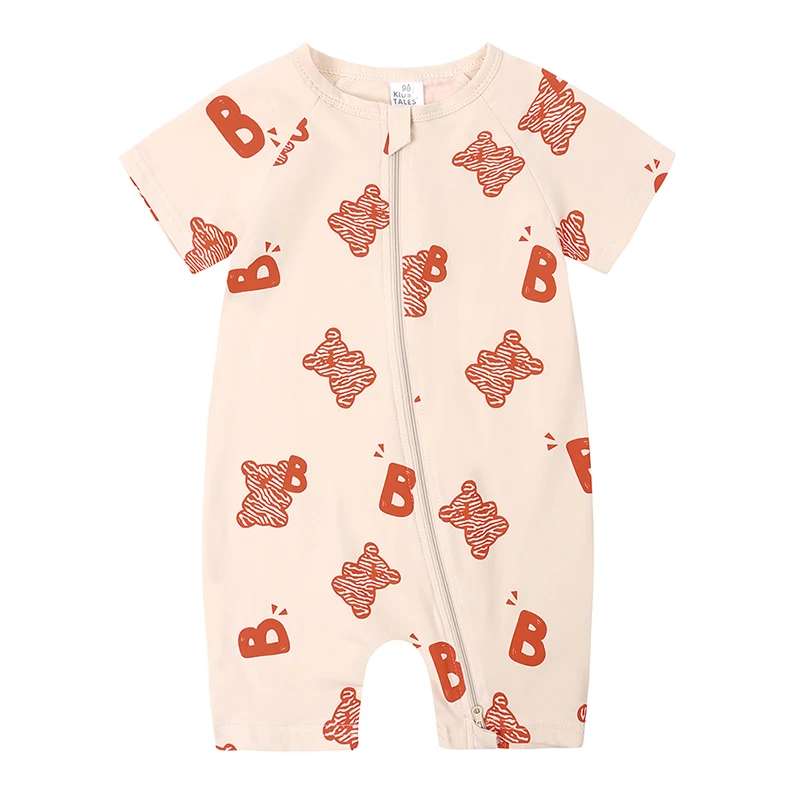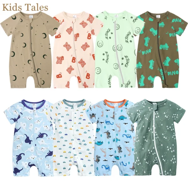 Newborn Baby Boys Girls Cartoon Print Romper Infant Short Sleeve Summer Cotton Bodysuit Infant Double Zipper Jumpsuit Clothes